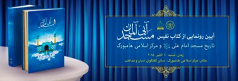 آیین رونمایی از كتاب نفیس « مسجد آبی آلمان؛ تاریخ مسجد امام علی و مرکز اسلامی هامبورگ»برگزار گردید. این کتاب که به قلم حجت الاسلام و المسلمین دکتر حمیدرضا ترابی به رشته تحریر درآمده، به غیر از بخش های ضميمه ، اسناد و مدارک تاریخی و نیز آلبوم تصاویر؛ مقدمه ای درباره آلمان و چهار فصل اصلی تحت عناوین «مسجد و مرکز اسلامی هامبورگ درگذر تاریخ»، «اهداف و رسالت ها»، «ارتباطات مسجد و مرکز اسلامی» و «فعّالیت ها و خدمات» دارد.