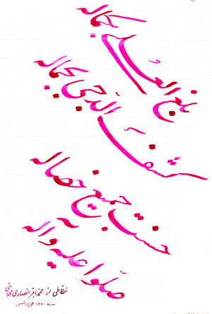 او در ستایش از خط ثلث در مصاحبه مذکور گفته است: دشوارترین خطوط هم خط «ثلث» است که ضرب المثل زیبایی و قدرت و عظمت است و به همین دلیل، آن را «پادشاه خط ها» نامیده اندو هرگاه خط عربی می گویند منظور همین خط ثلث است. خطاطی که آن را بشایستگی نداند خطاط انگاشته نمی شود.